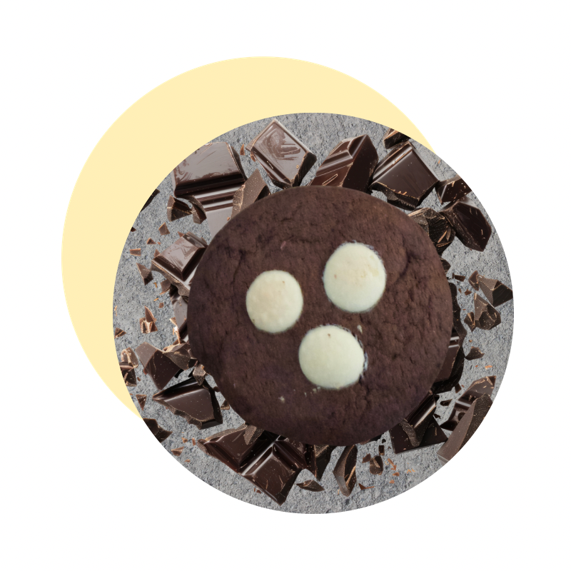 La face sombre du cookie. Trois chocolats qui fondent en bouche, pour celles et ceux qui n’ont pas peur du noir…